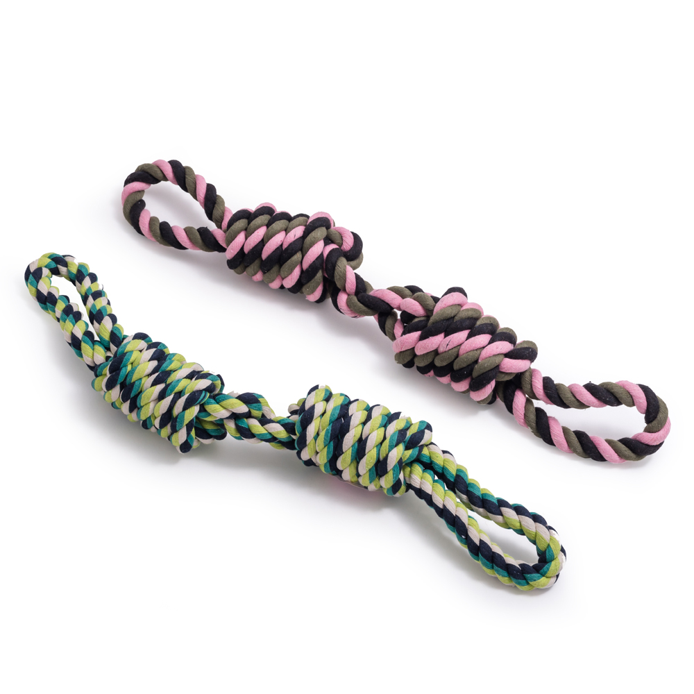 Dog toy cotton rope braided for biting with two handles and two braids 52cm