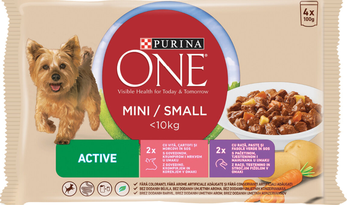 Purina ONE Active mini / small <10kg Говеждо и Патица 4x100gr